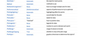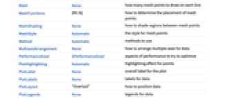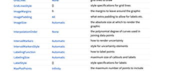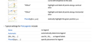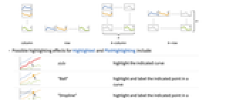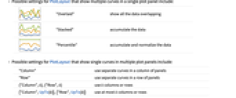 "Column" 在一列面板中使用不同曲线 "Row" 在一行面板中使用不同曲线 {"Column",k},{"Row",k} 使用 k 列或行 {"Column",UpTo[k]},{"Row",UpTo[k]} 使用至多 k 列或行 - 对 Highlighted 和 PlotHighlighting 的可能高亮效果包括: