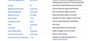 - ListVectorPlot 的选项与 Graphics 一样,不同之处和更多选项如下所示: [所有选项的列表]