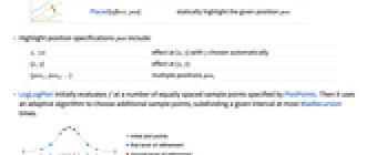 x, {x} {x,y}における効果.y は自動的に選択される {x,y} {x,y}における効果 {pos1,pos2,…} 複数の位置 posi - LogLogPlotは,まず,f をPlotPointsで指定された等間隔のサンプル点の数で評価する.次に,適応的アルゴリズムを使用し,指定の区間を最大MaxRecursion回まで部分分割して追加のサンプル点を選択する.