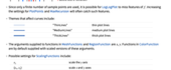 "ThickLines" 太いプロット線 - MeshFunctionsとRegionFunction内の関数に渡される引数は x と y である.ColorFunction内の関数には,デフォルトで,これらの引数のスケールされたものが渡される.
