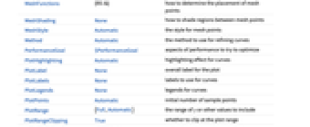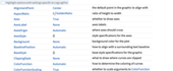 "Column" パネルの列に別々の曲線を使う "Row" パネルの行に別々の曲線を使う {"Column",k},{"Row",k} k 列(または行)を使う {"Column",UpTo[k]},{"Row",UpTo[k]} 最高で k 列(または行)を使う - デフォルト設定のExclusions->AutomaticとExclusionsStyle->Noneでは,LogLogPlotが不連続性や特異点を検知したところで曲線が途切れる.Exclusions->Noneとすると,不連続性や特異点があっても曲線は繋がれる.