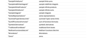 - MathematicalFunctionData[] 或 MathematicalFunctionData["Entities"] 列出所有数学函数实体.