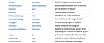 col 绘制列 col 的值 {col1,col2,…,coln} 将列 {col1, …, coln} 的值作为一组数据来绘制 - PairedHistogram 具有与 Graphics 相同的选项,并且有如下添加和变动: [所有选项的列表]