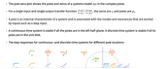 - The step responses for continuous- and discrete-time systems for different pole locations: