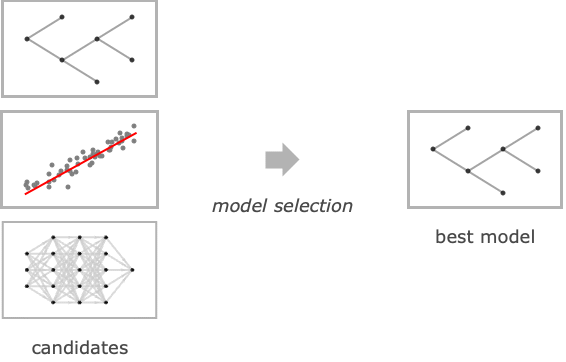 - 最終的なモデルタイプとハイパーパラメータ値は,訓練データについてのクロス確認を使って選択される.