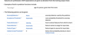 "name" 組込みの予測関数 FittedModel[…] PredictorFunction[…]に変換されたフィットモデル - 各例の入力 iniは,単一のデータ要素,リスト{feature1, …},あるいは連想<|"feature1"value1,…|>でよい.