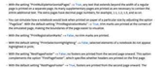 - "PrintMultipleHorizontalPages"->Trueの設定では,通常のページの横幅以上に及んでいるテキストは別のページに印刷される.余りのテキストのすべての内容が含まれるだけのページが印刷される.追加のページは1.1,1.2,1.3...等,小数で示される.