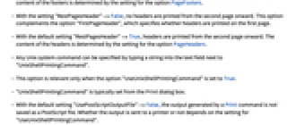 - "RestPagesHeader"->Falseでは,ヘッダは2ページ目からは印刷されない.このオプションは,フッタを第1ページに印刷するかどうかを指定するオプション"FirstPageHeader"を補完する