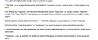 - "PageSize"の設定は,同様のオプション"PaperSize"(用紙サイズ)の設定に優先する."PagerSize" よりも小さい "PapeSize"の値を使うことで,例えば,ノートブックが小さい用紙で印刷されたとき,どのように印刷されるかということが確認できる.