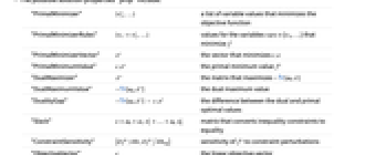 "PrimalMinimizer" 目的関数を最小化する変数値のリスト "PrimalMinimizerRules" を最小化する変数の値 vars={v1,…}