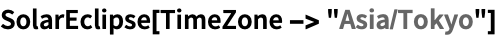 Wolfram Research (2014), SolarEclipse, Wolfram Language function, https://reference.wolfram.com/language/ref/SolarEclipse.html (updated 2024).