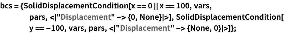 yields solid mechanics PDE terms with variables vars and parameters pars.