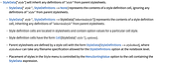 - StyleData["style",StyleDefinitions->StyleData["inheritedstyle"]] 表示样式定义单元的内容,继承任何来自于父样式表的 "inheritedstyle" 定义.