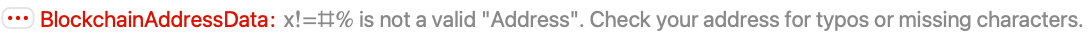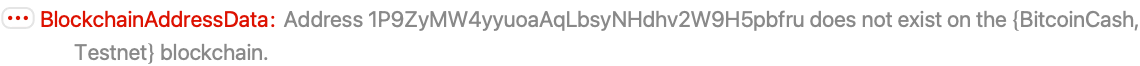 "address" address on the Bitcoin Cash blockchain "chain""address" address on the specified public blockchain {"chain","network"}"address" address on a specific network for a Bitcoin Cash blockchain - The addressSpec input refers to any input, whether it is a String address or an Association assoc.