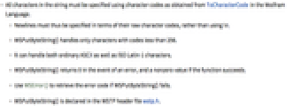 - 文字列中のすべての文字は,Wolfram言語のToCharacterCode から得られる文字コードを使って指定されたものでなければならない.