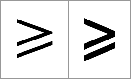 字符: \[GreaterEqual] \[GreaterFullEqual] \[NotGreaterSlantEqual]