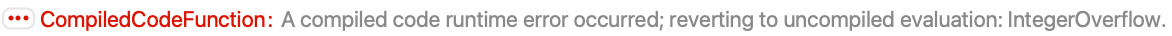 関数を実行している間に,オーバーフローによりエラーが生じる.計算は終了され,メッセージが出力される.結果を計算するためにWolfram Engineが使われる:
