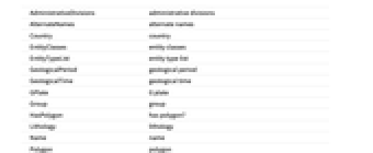 AdministrativeDivisions administrative divisions AlternateNames alternate names Country country EntityClasses entity classes EntityTypeList entity type list GeologicalPeriod geological period GeologicalTime geological time GPlate G plate Group group HasPolygon has polygon? Lithology lithology Name name Polygon polygon Position position SPlate S plate