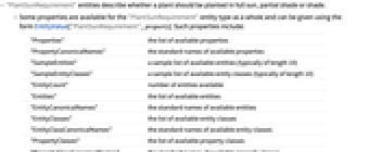 - "PlantSunRequirement"実体は,植物が日なた,半日陰,日陰のどちらに植えられるべきかについて表す.
