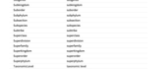AlternateCommonNames alternate common names AlternateScientificNames alternate scientific names AnnualNumberOfHumanCasualties annual number of human casualities AquaticBiomes aquatic biomes AssociatedBodySites associated body sites AssociatedHumanDiseases associated human diseases BiogeographicRegions biogeographic regions Biomass biomass Biomes biomes Class class ClassCount class count ClassList class list Cohort cohort Colors colors CommonName common name ConservationStatus conservation status Division division Emoji emoji EntityClasses entity classes EntityTypeList entity type list Family family FamilyCount family count FamilyList family list FederalTEStatus federal threatened or endangered status Form form GenerationTime generation time Genus genus GenusCount genus count HabitatDepth habitat depth HabitatElevation habitat elevation HabitatRegions habitat regions Height height HomeRangeArea home range area Hosts hosts Image image Infraclass infraclass Infraorder infraorder Kingdom kingdom KingdomCount kingdom count KingdomList kingdom list LatestYearOfPublication latest year of publication Length length Lifespan lifespan Mass weight MaximumRecordedLength maximum recorded length MaximumRecordedLifespan maximum recorded lifespan MaximumRecordedWeight maximum recorded weight MaximumTemperatureTolerance maximum temperature tolerance MinimumTemperatureTolerance minimum temperature tolerance Name name NCBITaxonomyID NCBI Taxonomy ID NucleotideSequenceLength nucleotide sequence length NumberOfChildTaxa number of child taxa NumberOfChromosomes number of chromosomes ObservationCountries observation countries ObservationLocations observation locations ObservationOceans observation oceans Order order OrderCount order count OrderList order list OriginalYearOfPublication original year of publication ParentTaxon parent taxon Parvorder parvorder PhyleticGroups phyletic groups Phylum phylum PhylumCount phylum count PhylumList phylum list PrimaryTaxonomicSequence primary taxonomic sequence RefSeqAssemblyAccessionNumber RefSeq assembly accession number ScientificName scientific name Section section Series series Species species SpeciesAuthority species authority SpeciesCount species count SpeciesGroup species group SpeciesSubgroup species subgroup SpecificObservationLocations specific observation locations Subclass subclass Subcohort subcohort Subdivision subdivision Subfamily subfamily Subgenus subgenus Subkingdom subkingdom Suborder suborder Subphylum subphylum Subsection subsection Subspecies subspecies Subtribe subtribe Superclass superclass Superdivision superdivision Superfamily superfamily Superkingdom superkingdom Superorder superorder Superphylum superphylum TaxonomicLevel taxonomic level TaxonomicSequence taxonomic sequence TaxonomicSequenceList taxonomic sequence list TerrestrialBiomes terrestrial biomes Tribe tribe TrophicLevel trophic level Variety variety WetlandBiomes wetland biomes WorldPopulation world population