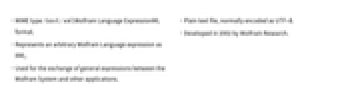 - MIMEタイプ:text/xmlWolfram言語のExpressionML形式.