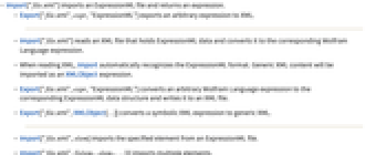 - Export["file.xml",expr,"ExpressionML"]は任意のWolfram言語式を対応するExpressionMLデータ構造に変換して,XML式に書き込む.