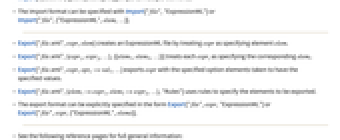 - インポートの形式はImport["file","ExpressionML"]あるいは Import["file",{"ExpressionML",elem,…}]を使って指定することができる.
