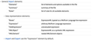 "Elements" ファイル中の有効な要素とオプションのリスト "Summary" ファイルの概要 "Rules" 使用可能なすべての要素の規則のリスト - データ表現要素: