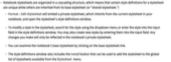- ノートブックでプライベートスタイルを編集するためには,ドロップダウンメニューを使ってスタイルを検索するか,スタイル定義ウィンドウの検索フィールドにスタイルを入力する.ここで加えた変更は,そのノートブックのプライベートスタイルシートにのみ反映される.