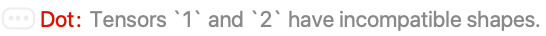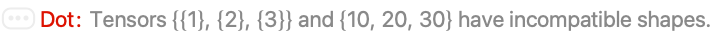 This message is generated when a requested dot product cannot be computed because the number of elements in the inner dimension of one argument is not the same as the number of elements in the outer dimension of the subsequent argument.