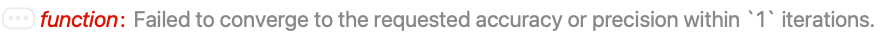 - This message is generated when the indicated limit on the number of iterations is reached before finding a region that contains the requested result.