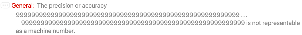 This message is generated when the precision specification prec in the notation digits`prec for numbers, or the accuracy specification acc in digits`acc, is not a machine number.