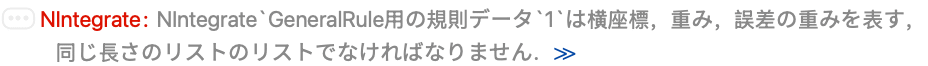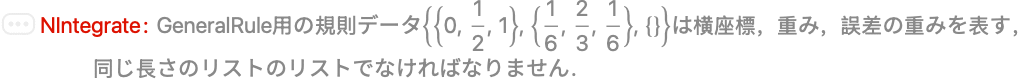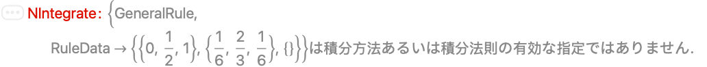 この例は,シンプソンの公式の横座標,および誤差の重みなしの重みの指定をと示す:
