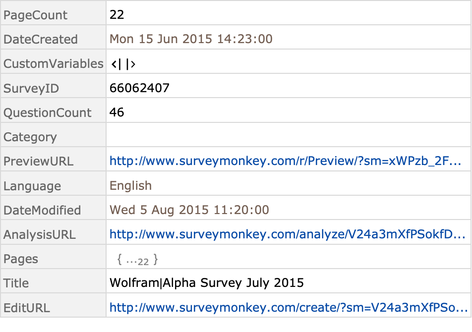 Connect to the SurveyMonkey API using the Wolfram Language to retrieve survey details and analyze responses.