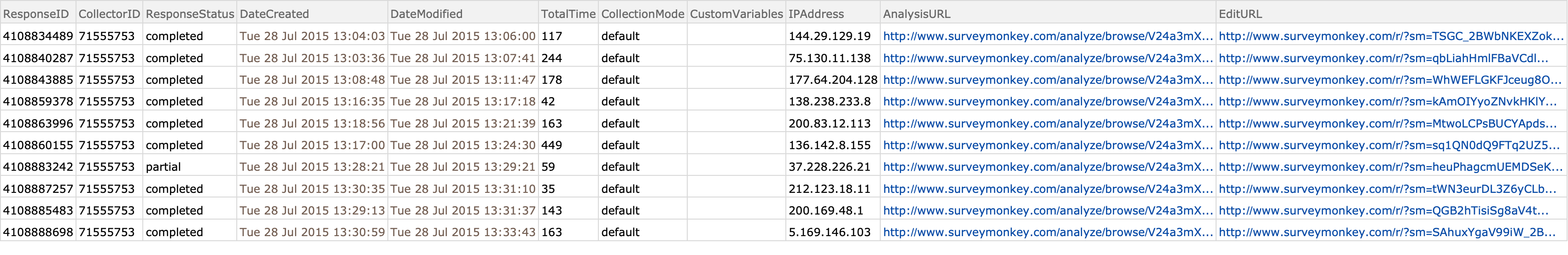 "CollectorResponseList" — retrieves a paged list of respondents for a given collector