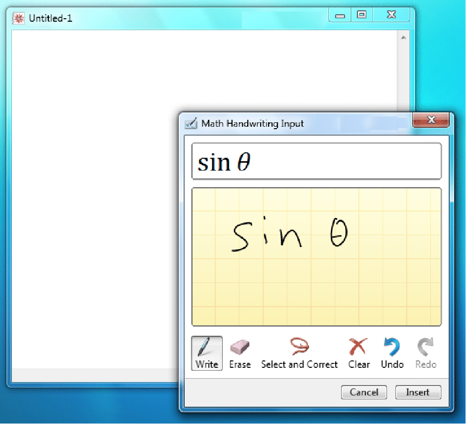 Wolframシステムは手書きの数式を認識するために,Windows 7以降に組み込まれたMicrosoft数式認識装置を使う.これにより,標準化された手書きの数式表記をWolframシステムノートブックにTraditionalFormで入力することができる.