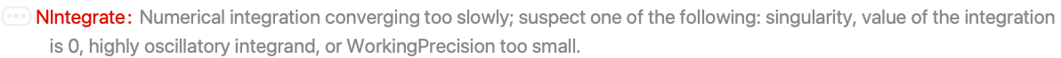 (注意对于较高的精确度目标,NIntegrate 给出正确结果.)