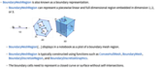 - BoundaryMeshRegion can represent a piecewise linear and full-dimensional region embedded in dimension 1, 2, or 3.