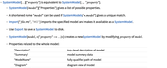 - SystemModel["model"]["Properties"] gives a list of possible properties.