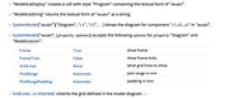 - SystemModel["model",{property,options}] accepts the following options for property "Diagram" and "ModelicaIcon":